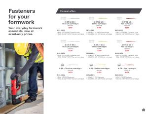 Fasteners for your formwork Your everyday formwork essentials, now at event‐only prices.