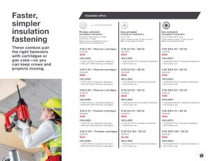 Faster, simpler insulation fastening These combos pair the right fasteners with cartridges or gas cans— so you can keep crews and projects moving.