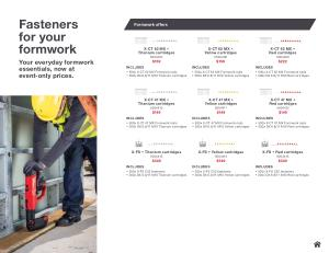 Fasteners for your formwork Your everyday formwork essentials, now at event‐only prices.