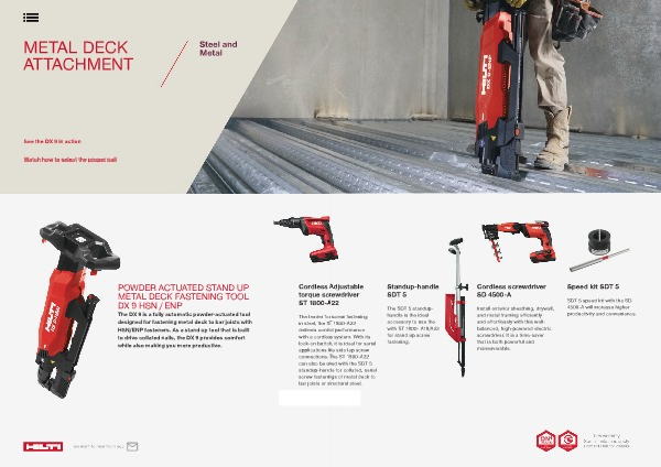 screw fastening 1800-A22 d performance system. With its, it is ideal for serial e side lap screw he ST 1800-A22 ed with the SDT 5 le for collated, serial gs of metal deck to ructural steel.