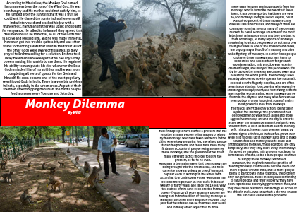 The Hindu people have started a problem that has resulted in many people being mauled or killed by the monkeys who have taken residence in the cities where they are being fed. The Hindu people started the problem, and there have been many firsthand accounts of people being abused by these monkeys, and the government has tried many different tactics in order to solve the problem, so far to no avail.