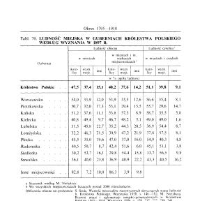 Tabl. 70. LUDNOŚĆ MIEJSKA W GUBERNIACH KRÓLESTWA POLSKIEGO