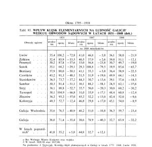 Tabl. 93. WPLYW KLĘSK ELEMENTARNYCH NA LUDNOŚĆ GALICJia