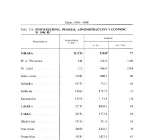 Tabl. 118. POWIERZCHNIA, PODZIAL AD MIN1STRACY JNY I LUDNOŚĆ