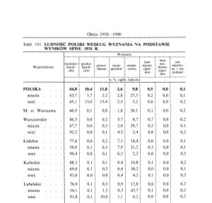 Tabl. 131. LUDNOŚĆ POLSKI WEDŁUG WYZNANIA NA PODSTA WIE