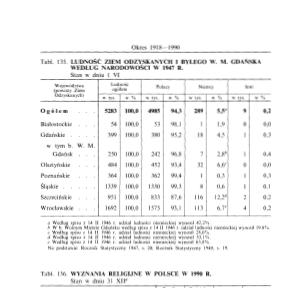 Tabl. 135. LUDNOŚĆ ZIEM ODZYSKANYCH I BYLEGO W. M. GDAŃSKA