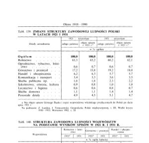Tabl. 139. ZMIANY STRUKTURY ZAWODOWEJ LUDNOŚCI POLSKI