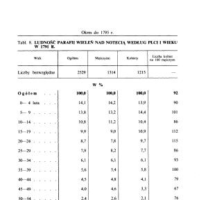 Tabl. 8. LUDNOŚĆ PARAFII WIELEŃ NAD NOTECIĄ WEDLUG PLCI I WIEKU