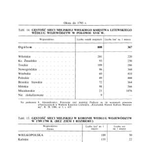 Tabl. 14. GĘSTOŚĆ SIECI MIEJSKIEJ WIELKIEGO KSIĘSTWA LITEWSKIEGO