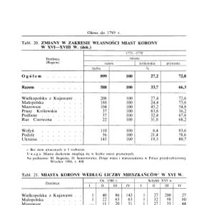 Tabl. 20. ZMIANY W ZAKRESIE WŁASNOŚCI MIAST KORONY