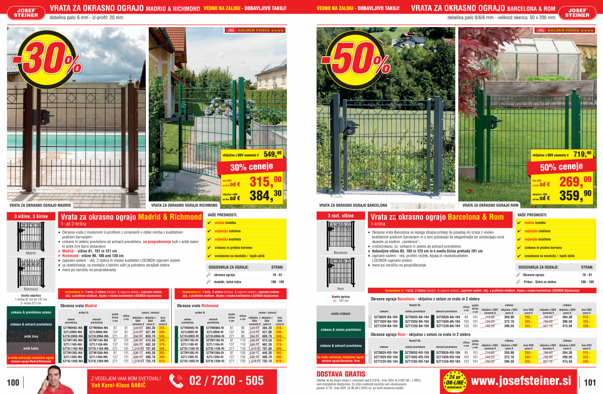 ODGOVARJA ZA OGRAJE: STRAN: okrasna ograja 78- 81 dodatki, talna sidra 108- 109