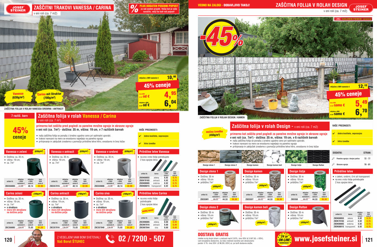 primerno kot zaščita pred pogledi za panelne mrežne ograje in okrasne ograje v eni roli( ca. 7m 2)- dolžina: 35 m, višina: 19 cm, v 6 različnih barvah