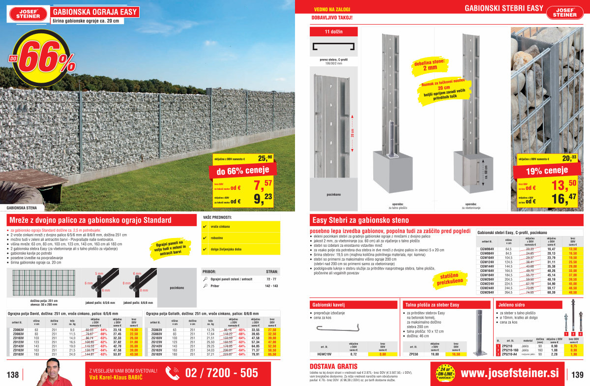 Izdelke na tej dvojni strani v vrednosti nad € 2.875,- brez DDV(€ 3.507,50,- z DDV), vam brezplačno dostavimo. Za nižjo vrednost naročila vam obračunamo pavšal € 79,- brez DDV(€ 96,38 z DDV) oz. po tarifi dostavne službe.