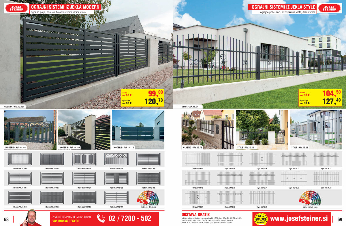 OGRAJNI SISTEMI IZ JEKLA MODERN ograjno polje, eno- ali dvokrilna vrata, drsna vrata