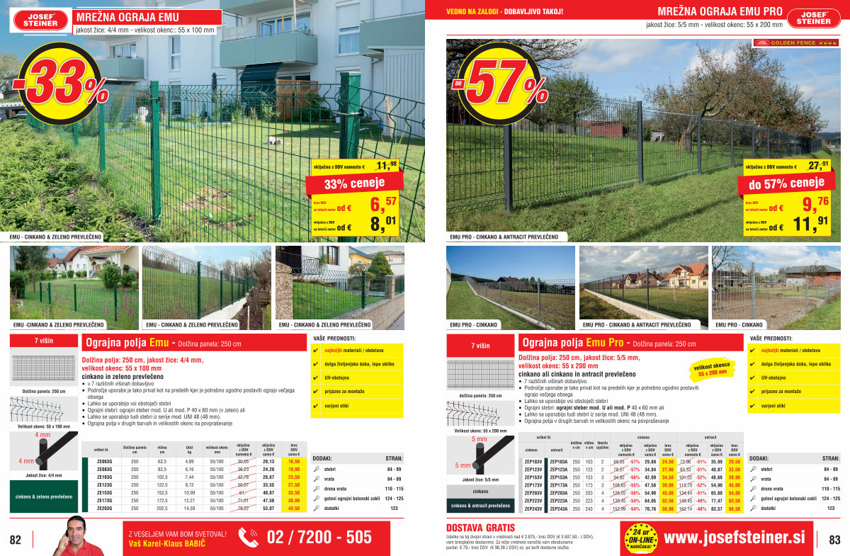 • Ograjna polja v drugih barvah in velikostih okenc na povpraševanje
