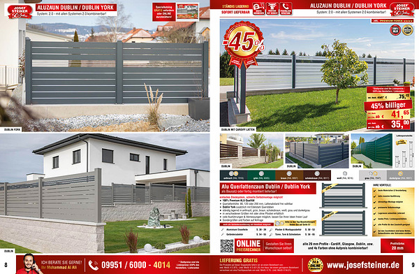 alle 20 mm Profile- Cardiff, Glasgow, Dublin, usw. und 4s Farben ohne Aufpreis kombinierbar! bei den Zaunfeldern sind keine Nieten, Schweißnähte oder Schrauben sichtbar!