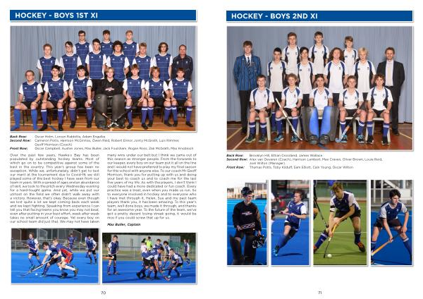 Over the past few years , Hawke ’ s Bay has been populated by outstanding hockey teams . Most of which go on to be competitive against some of the best in the country . This year ’ s group has been no exception . While we , unfortunately , didn ’ t get to test our merit at the tournament due to Covid-19 , we still played some of the best hockey I have seen from our team in years . With a spread of ages and an abundance of skill , we took to the pitch every Wednesday evening for a hard-fought game . And yet , while we put our utmost on the field we often didn ’ t walk away with a victory . However , that ’ s okay . Because even though we lost quite a lot we kept coming back each week and we kept fighting . Speaking from experience I can tell you that facing teams you know you may not beat , even after putting in your best effort , week after week takes no small amount of courage . Yet every boy on our school team did just that . We may not have taken many wins under our belt but I think we came out of this season as stronger people . From the forwards to our keeper , every boy on our team put it all on the line and I would not have preferred to play my final season for this school with anyone else . To our coach Mr Geoff Morrison , thank you for putting up with us and doing your best to coach us and to coach me for the last five years of my life . As with the players , I don ’ t think I could have had a more dedicated or fun coach . Every practice was a treat , even when you made us run . So to everyone involved in hockey and to everyone who I have met through it , Helen , Sue and my past team players thank you , it has been amazing . To this year ’ s team , well done boys , we made it through , and thanks for an awesome year . To the future of the team , we ’ ve got a pretty decent losing streak going , it would be nice if you could screw that up for us .