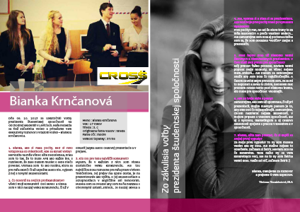 Dňa 08. 10. 2013 sa uskutočnili voľby prezidenta študentskej spoločnosti na Obchodnej akadémií v Leviciach. Naša redakcia sa tiež zúčastnila volieb a prinášame vám exkluzívny rozhovor s víťazom volieb – Biankou Krnčanovou.