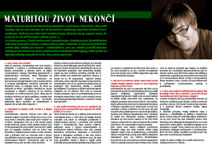 Tento moment nastal asi 2 týždne pred termínom odovzdania práce. V tom čase mi nejaký dobrák odcudzil USB kľúče so všetkými podkladmi a rozpracovanou prácou. V podstate som projekt musel v zostávajúcom čase nanovo napísať. Našťastie spolu s mojou konzultantkou p. profesorkou Erikou Píšiovou sme dali dokopy existujúce pripravené materiály z mailových príloh a školského počítača, a tak som mohol finišovať v limite. Mojou odmenou bolo, že kým moji spolužiaci sedeli v škole a trápili svoje hlavičky nad zadaniami praktickej maturity, ja som