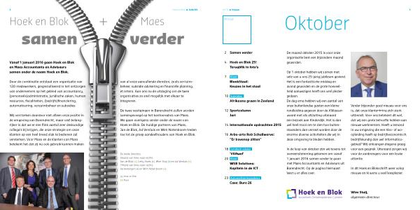 In de loop van oktober zijn wij tevens tot overeenstemming gekomen om vanaf 1 januari 2016 samen verder te gaan met Maes Accountants en Adviseurs uit Barendrecht . Op de pagina hiernaast leest u er alles over .