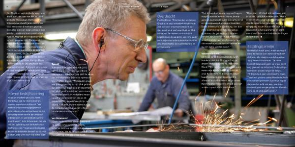 Naast de marketingkeuzes , heeft Blonkstaal ook de interne bedrijfsvoering geprofessionaliseerd . “ We hebben functioneringsgesprekken geïntroduceerd en geïnvesteerd in één softwarepakket waarin de complete orderstroom en administratie geïntegreerd wordt ”, licht Schuurman toe , die zelf een opleiding aan de Hotelschool heeft afgerond . “ Tegenwoordig leveren we ook de projecten formeel op bij onze klanten . Dat komt toch iets beter over .”