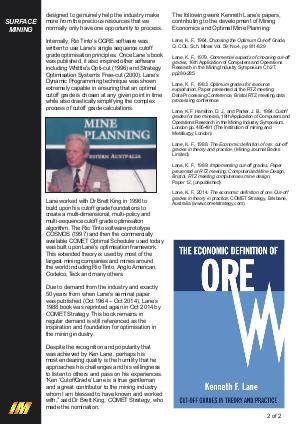 Lane, K. F., 2014. The economic definition of ore: Cut-off