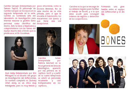 Camille Saroyan (interpretada por Tamara Taylor). El personaje de Camille Saroyan se incorpora en la segunda temporada de la serie. Camille es nombrada jefa del laboratorio de investigación para intentar mejorar la gestión tanto personal como científica del mismo. Esto la lleva a implicarse y comprometerse con las tareas del equipo mucho más a fondo que su predecesor, el Dr. Goodman.