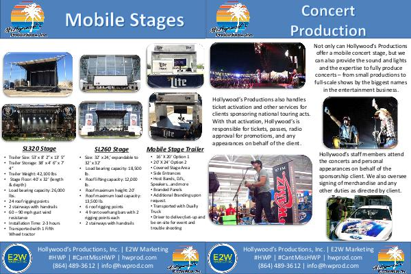 Hollywood’ s Productions, Inc. | E2W Marketing # HWP | # CantMissHWP | hwprod. com( 864) 489-3612 | info @ hwprod. com