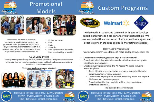 Hollywood’ s Productions, Inc. | E2W Marketing # HWP | # CantMissHWP | hwprod. com( 864) 489-3612 | info @ hwprod. com