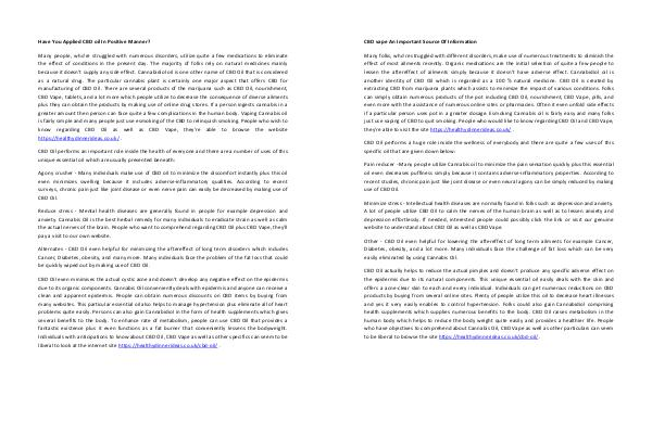 Other - CBD Oil even helpful for lowering the aftereffect of long term ailments for example Cancer,