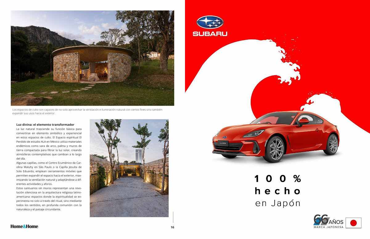 Luz divina: el elemento transformador La luz natural trasciende su función básica para convertirse en elemento simbólico y experiencial en estos espacios de culto. El Espacio espiritual El Perdido de estudio ALA en México utiliza materiales endémicos como vara de arco, palma y muros de tierra compactada para filtrar la luz solar, creando atmósferas contemplativas que cambian a lo largo del día. Algunas capillas, como el Centro Ecuménico de Carolina Maluhy en São Paulo o la Capilla Jesuita de Solo Eduardo, emplean cerramientos móviles que permiten expandir el espacio hacia el exterior, maximizando la ventilación natural y adaptándose a diferentes actividades y aforos. Estos santuarios sin muros representan una revolución silenciosa en la arquitectura religiosa latinoamericana: espacios donde la espiritualidad se experimenta no solo a través del ritual, sino mediante todos los sentidos, en profunda comunión con la naturaleza y el paisaje circundante.