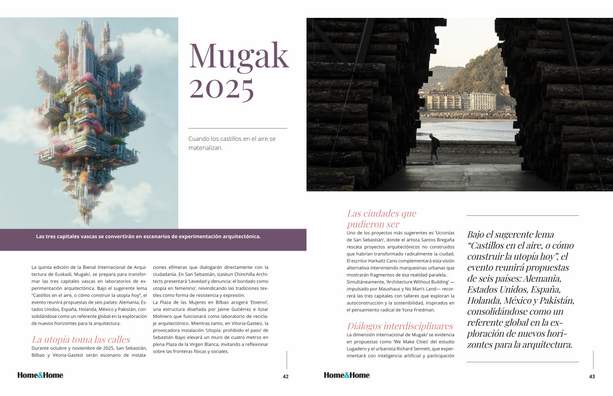 Uno de los proyectos más sugerentes es‘ Ucronías de San Sebastián’, donde el artista Santos Bregaña rescata proyectos arquitectónicos no construidos que habrían transformado radicalmente la ciudad. El escritor Harkaitz Cano complementará esta visión alternativa interviniendo marquesinas urbanas que mostrarán fragmentos de esa realidad paralela. Simultáneamente,‘ Architecture Without Building’— impulsado por Maushaus y No Man’ s Land— recorrerá las tres capitales con talleres que exploran la autoconstrucción y la sostenibilidad, inspirados en el pensamiento radical de Yona Friedman.