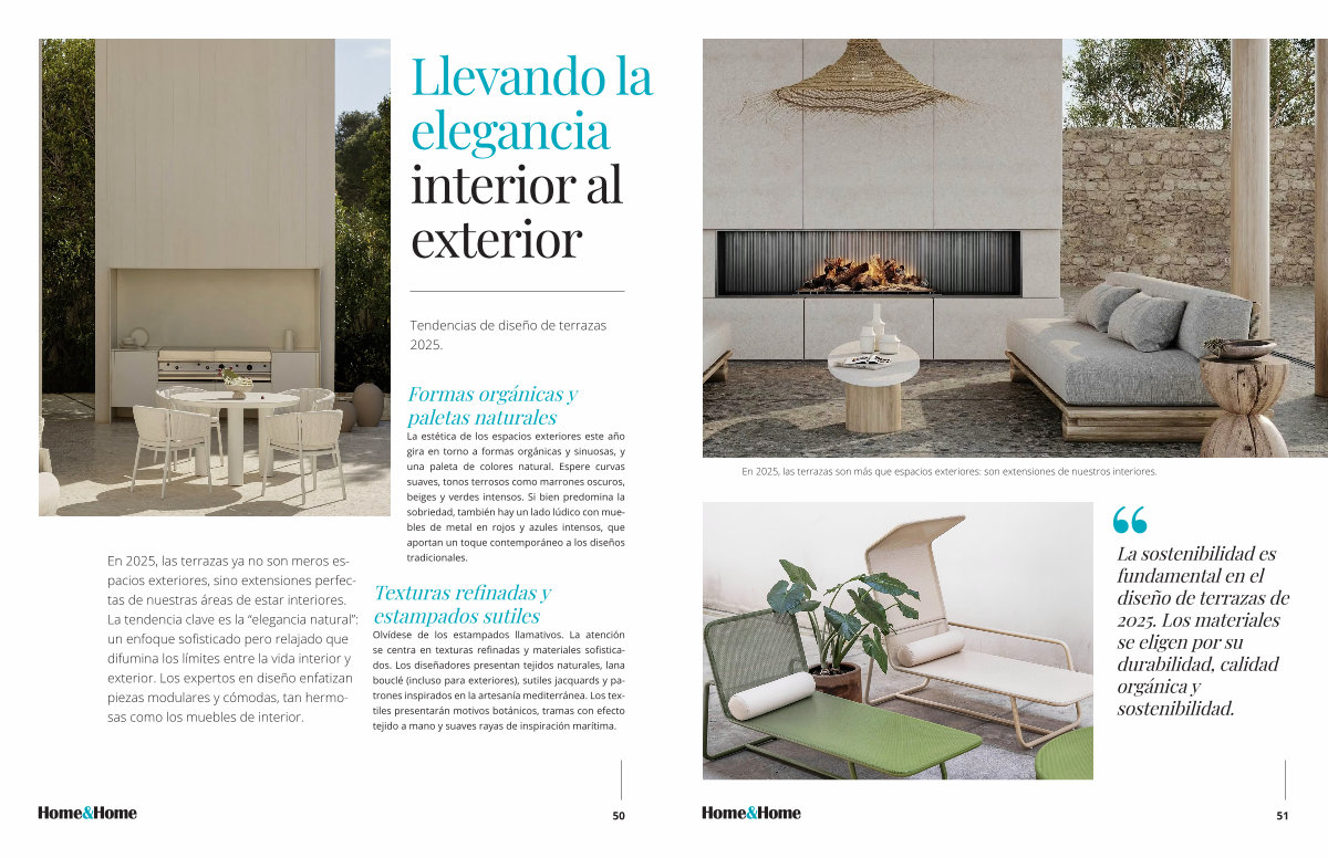 En 2025, las terrazas ya no son meros espacios exteriores, sino extensiones perfectas de nuestras áreas de estar interiores. La tendencia clave es la“ elegancia natural”: un enfoque sofisticado pero relajado que difumina los límites entre la vida interior y exterior. Los expertos en diseño enfatizan piezas modulares y cómodas, tan hermosas como los muebles de interior.