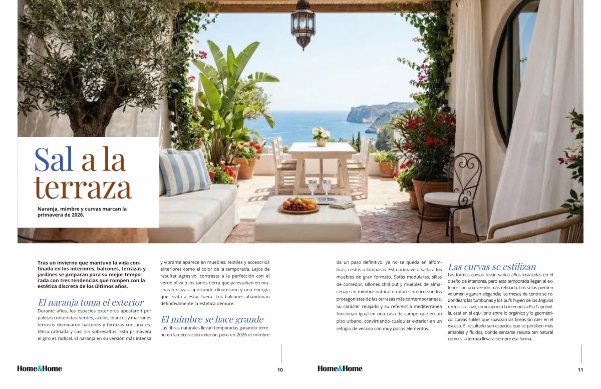 Durante años, los espacios exteriores apostaron por paletas contenidas: verdes, azules, blancos y marrones terrosos dominaron balcones y terrazas con una estética calmada y casi sin sobresaltos. Esta primavera el giro es radical. El naranja en su versión más intensa y vibrante aparece en muebles, textiles y accesorios exteriores como el color de la temporada. Lejos de resultar agresivo, contrasta a la perfección con el verde oliva o los tonos tierra que ya estaban en muchas terrazas, aportando dinamismo y una energía que invita a estar fuera. Los balcones abandonan definitivamente la estética demure.