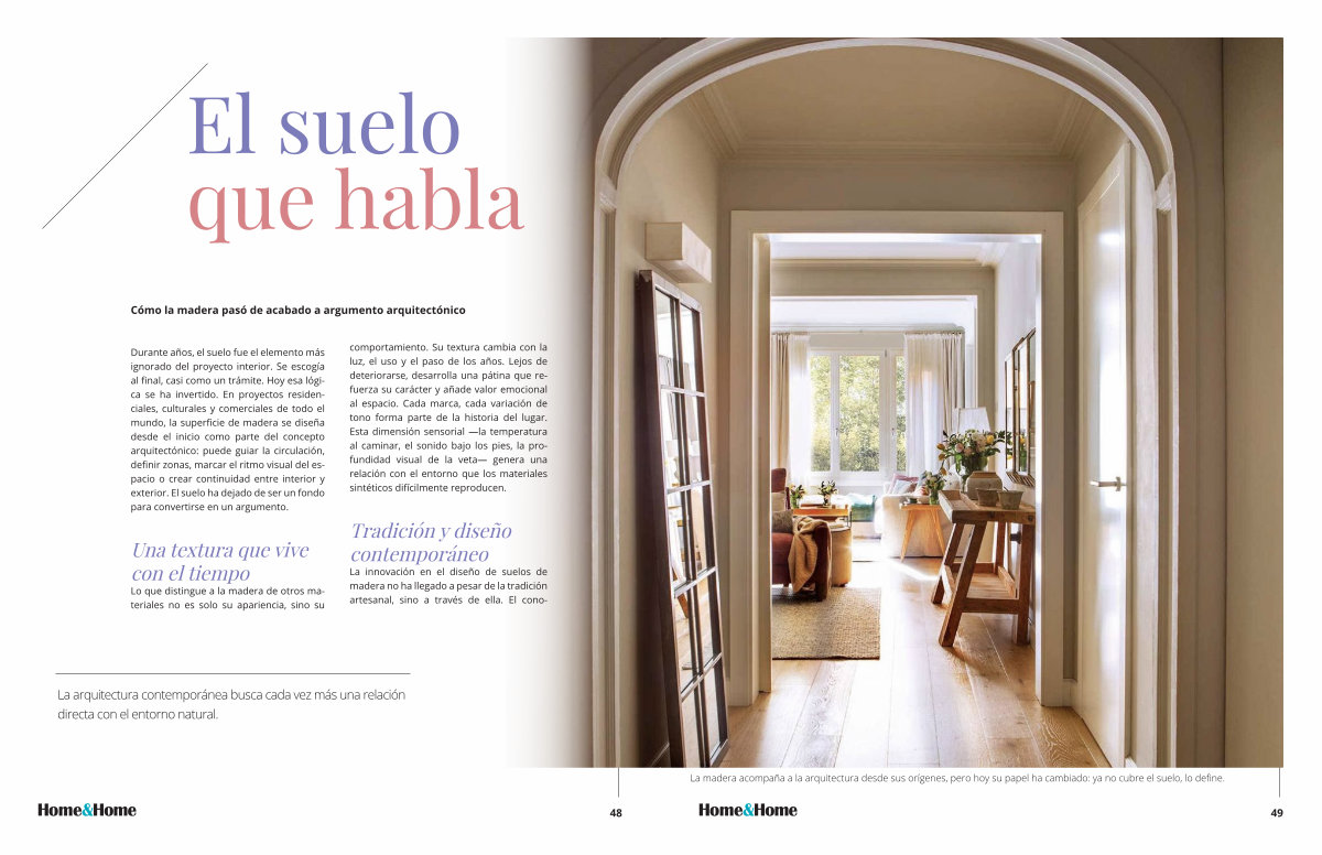 Durante años, el suelo fue el elemento más ignorado del proyecto interior. Se escogía al final, casi como un trámite. Hoy esa lógica se ha invertido. En proyectos residenciales, culturales y comerciales de todo el mundo, la superficie de madera se diseña desde el inicio como parte del concepto arquitectónico: puede guiar la circulación, definir zonas, marcar el ritmo visual del espacio o crear continuidad entre interior y exterior. El suelo ha dejado de ser un fondo para convertirse en un argumento.