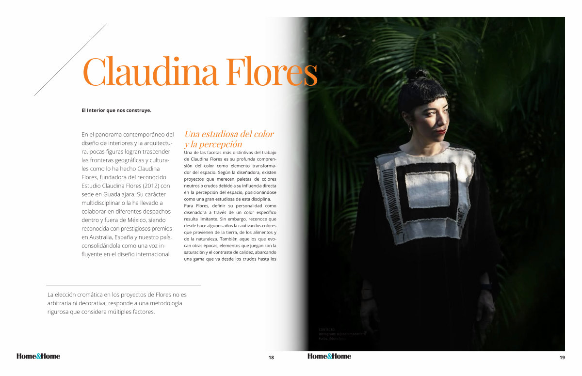 En el panorama contemporáneo del diseño de interiores y la arquitectura, pocas figuras logran trascender las fronteras geográficas y culturales como lo ha hecho Claudina Flores, fundadora del reconocido Estudio Claudina Flores( 2012) con sede en Guadalajara. Su carácter multidisciplinario la ha llevado a colaborar en diferentes despachos dentro y fuera de México, siendo reconocida con prestigiosos premios en Australia, España y nuestro país, consolidándola como una voz influyente en el diseño internacional.
