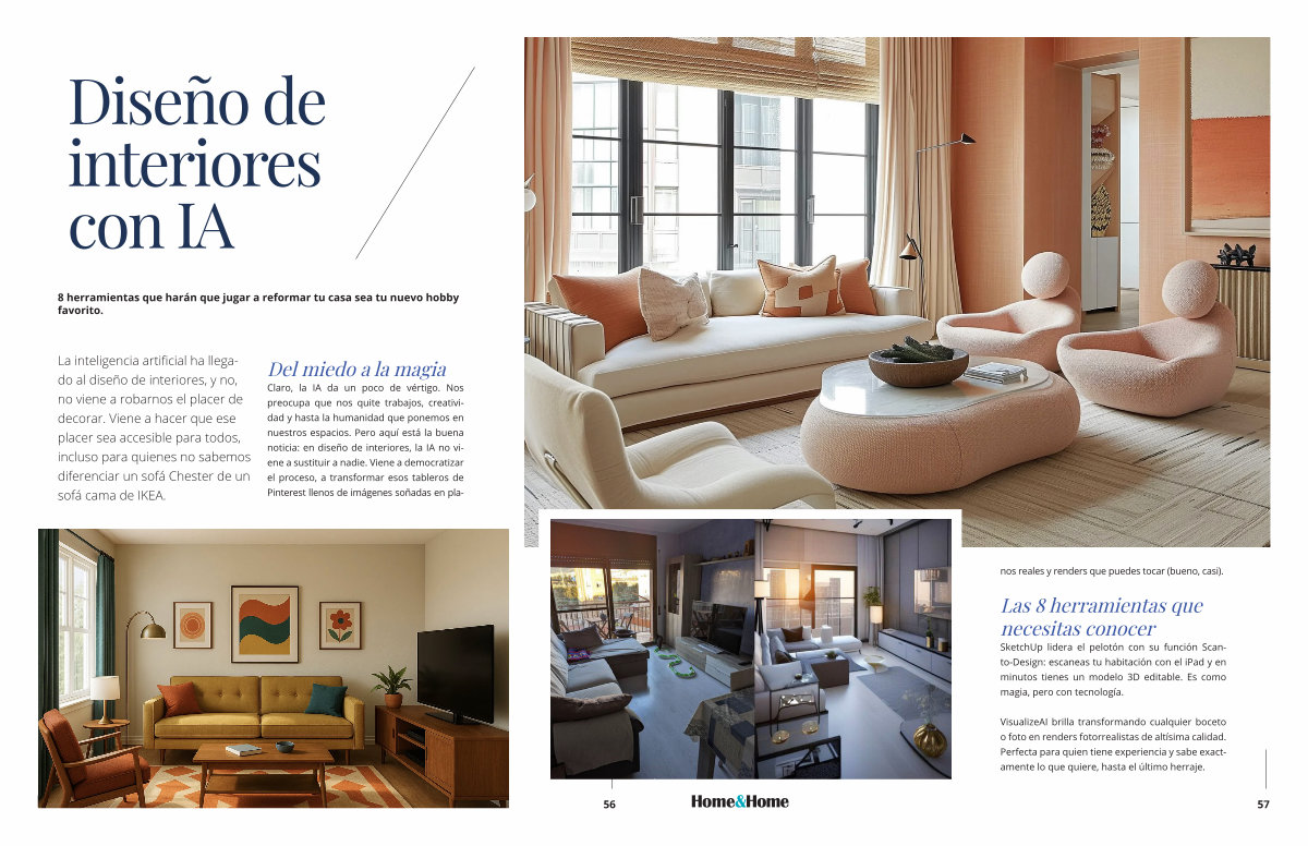 La inteligencia artificial ha llegado al diseño de interiores, y no, no viene a robarnos el placer de decorar. Viene a hacer que ese placer sea accesible para todos, incluso para quienes no sabemos diferenciar un sofá Chester de un sofá cama de IKEA.