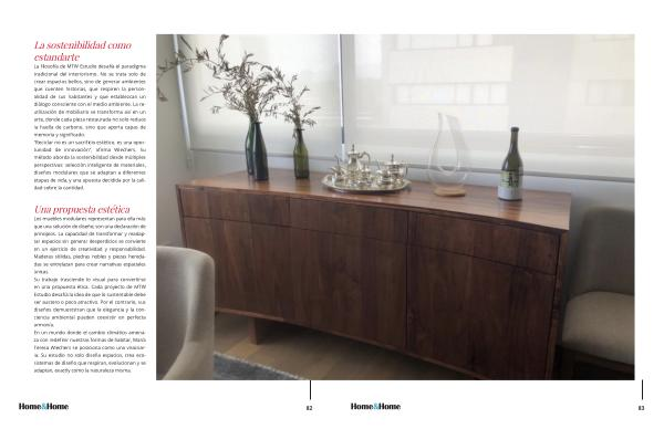 La filosofía de MTW Estudio desafía el paradigma tradicional del interiorismo . No se trata solo de crear espacios bellos , sino de generar ambientes que cuenten historias , que respiren la personalidad de sus habitantes y que establezcan un diálogo consciente con el medio ambiente . La reutilización de mobiliario se transforma así en un arte , donde cada pieza restaurada no solo reduce la huella de carbono , sino que aporta capas de memoria y significado . “ Reciclar no es un sacrificio estético , es una oportunidad de innovación ”, afirma Wiechers . Su método aborda la sostenibilidad desde múltiples perspectivas : selección inteligente de materiales , diseños modulares que se adaptan a diferentes etapas de vida , y una apuesta decidida por la calidad sobre la cantidad .