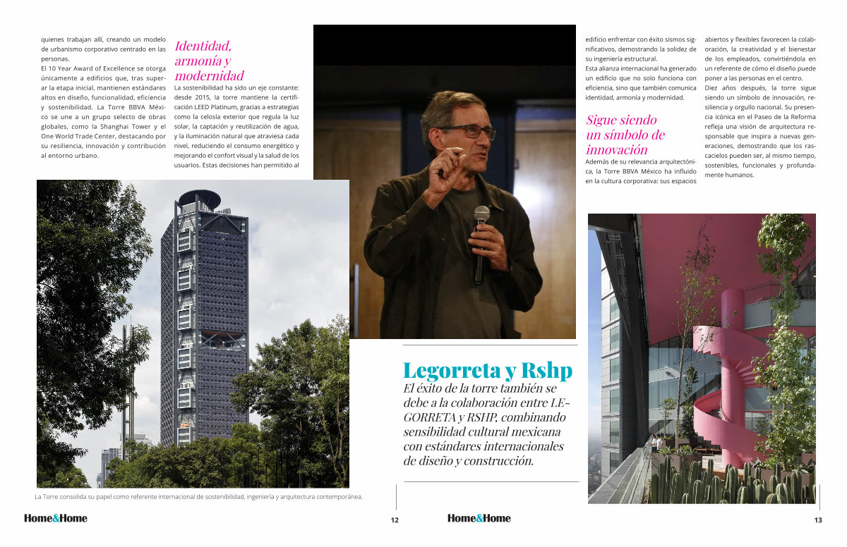 El éx debe GOR sens con de d quienes trabajan allí, creando un modelo de urbanismo corporativo centrado en las personas. El 10 Year Award of Excellence se otorga únicamente a edificios que, tras superar la etapa inicial, mantienen estándares altos en diseño, funcionalidad, eficiencia y sostenibilidad. La Torre BBVA México se une a un grupo selecto de obras globales, como la Shanghai Tower y el One World Trade Center, destacando por su resiliencia, innovación y contribución al entorno urbano.