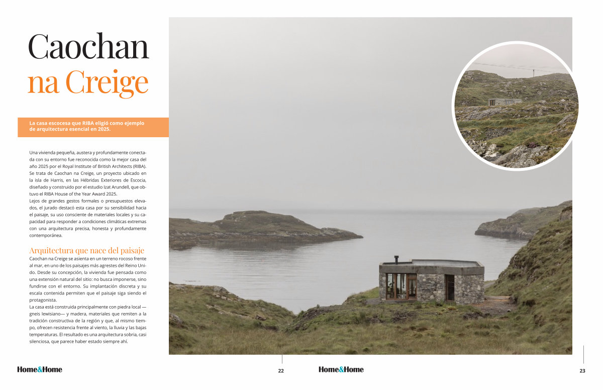Una vivienda pequeña, austera y profundamente conectada con su entorno fue reconocida como la mejor casa del año 2025 por el Royal Institute of British Architects( RIBA). Se trata de Caochan na Creige, un proyecto ubicado en la isla de Harris, en las Hébridas Exteriores de Escocia, diseñado y construido por el estudio Izat Arundell, que obtuvo el RIBA House of the Year Award 2025. Lejos de grandes gestos formales o presupuestos elevados, el jurado destacó esta casa por su sensibilidad hacia el paisaje, su uso consciente de materiales locales y su capacidad para responder a condiciones climáticas extremas con una arquitectura precisa, honesta y profundamente contemporánea.