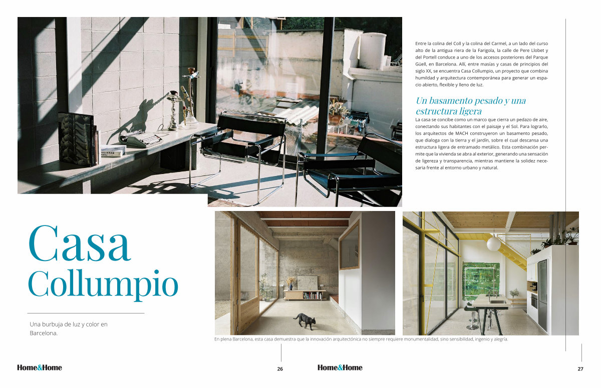 Entre la colina del Coll y la colina del Carmel, a un lado del curso alto de la antigua riera de la Farigola, la calle de Pere Llobet y del Portell conduce a uno de los accesos posteriores del Parque Güell, en Barcelona. Allí, entre masías y casas de principios del siglo XX, se encuentra Casa Collumpio, un proyecto que combina humildad y arquitectura contemporánea para generar un espacio abierto, flexible y lleno de luz.