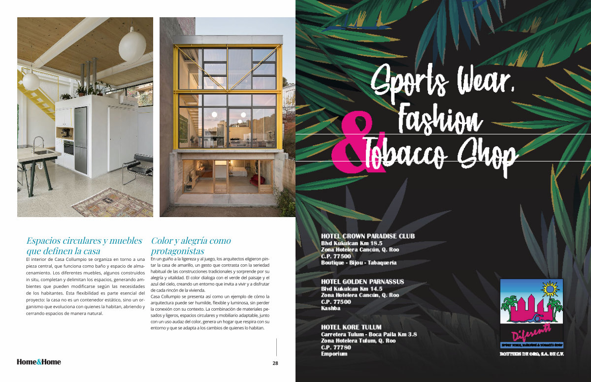 En un guiño a la ligereza y al juego, los arquitectos eligieron pintar la casa de amarillo, un gesto que contrasta con la seriedad habitual de las construcciones tradicionales y sorprende por su alegría y vitalidad. El color dialoga con el verde del paisaje y el azul del cielo, creando un entorno que invita a vivir y a disfrutar de cada rincón de la vivienda. Casa Collumpio se presenta así como un ejemplo de cómo la arquitectura puede ser humilde, flexible y luminosa, sin perder la conexión con su contexto. La combinación de materiales pesados y ligeros, espacios circulares y mobiliario adaptable, junto con un uso audaz del color, genera un hogar que respira con su entorno y que se adapta a los cambios de quienes lo habitan.