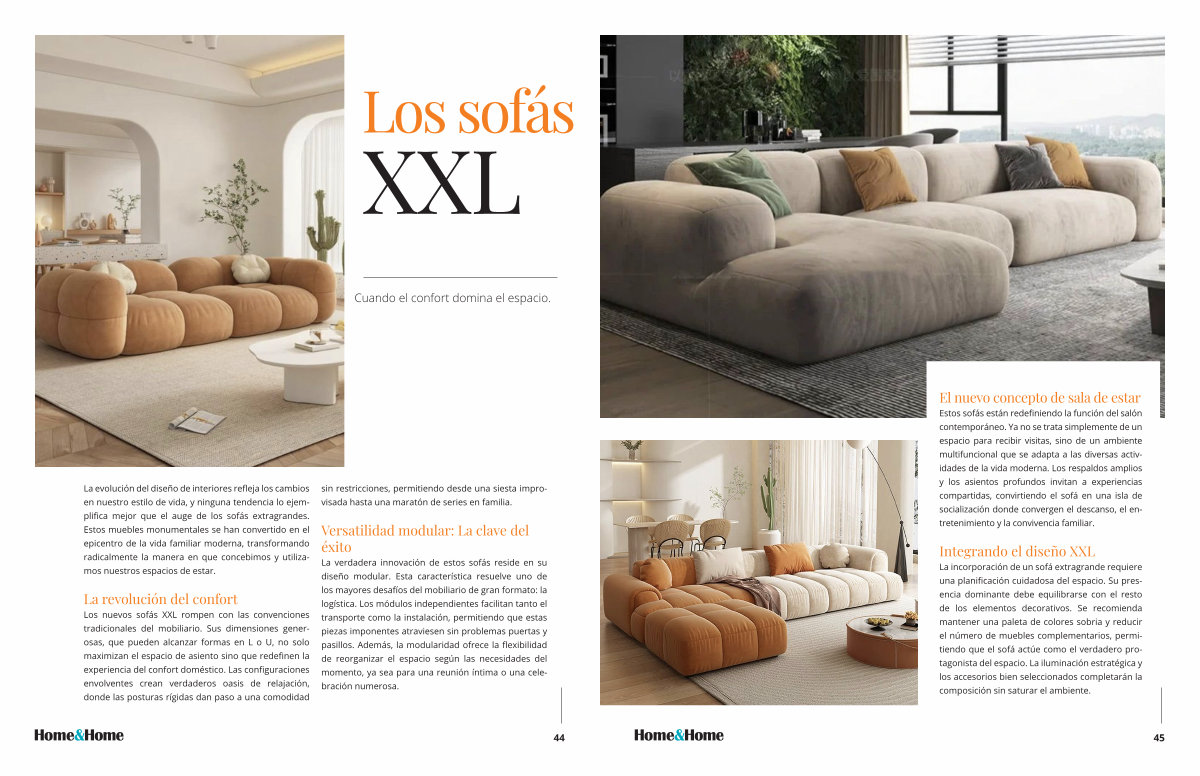 Estos sofás están redefiniendo la función del salón contemporáneo. Ya no se trata simplemente de un espacio para recibir visitas, sino de un ambiente multifuncional que se adapta a las diversas actividades de la vida moderna. Los respaldos amplios y los asientos profundos invitan a experiencias compartidas, convirtiendo el sofá en una isla de socialización donde convergen el descanso, el entretenimiento y la convivencia familiar.