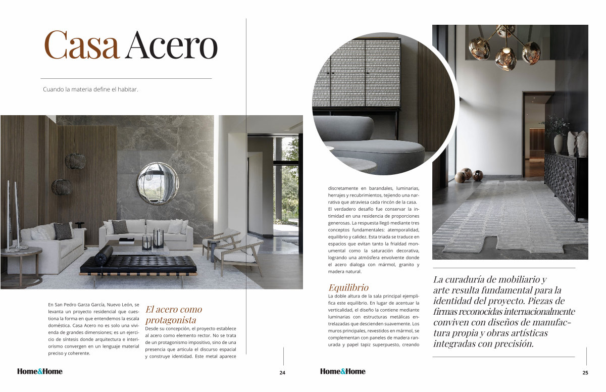 En San Pedro Garza García, Nuevo León, se levanta un proyecto residencial que cuestiona la forma en que entendemos la escala doméstica. Casa Acero no es solo una vivienda de grandes dimensiones; es un ejercicio de síntesis donde arquitectura e interiorismo convergen en un lenguaje material preciso y coherente.