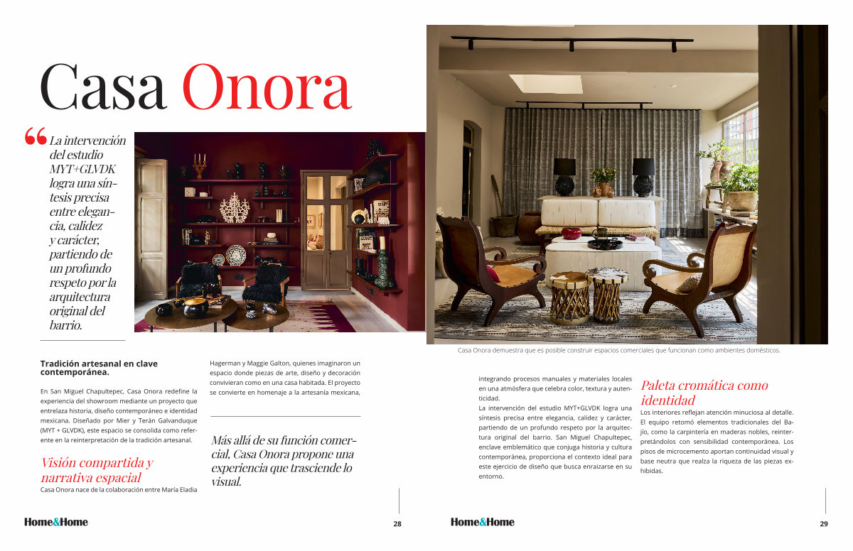En San Miguel Chapultepec, Casa Onora redefine la experiencia del showroom mediante un proyecto que entrelaza historia, diseño contemporáneo e identidad mexicana. Diseñado por Mier y Terán Galvanduque( MYT + GLVDK), este espacio se consolida como referente en la reinterpretación de la tradición artesanal.