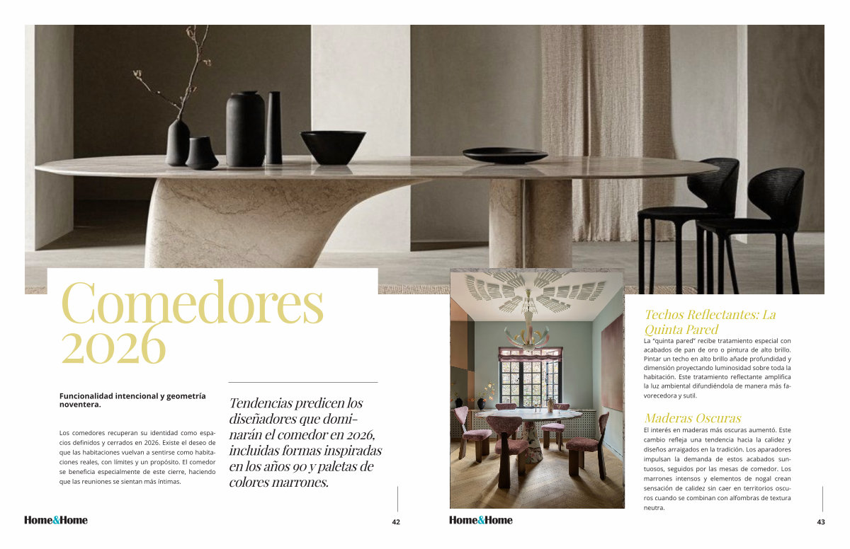 Los comedores recuperan su identidad como espacios definidos y cerrados en 2026. Existe el deseo de que las habitaciones vuelvan a sentirse como habitaciones reales, con límites y un propósito. El comedor se beneficia especialmente de este cierre, haciendo que las reuniones se sientan más íntimas.