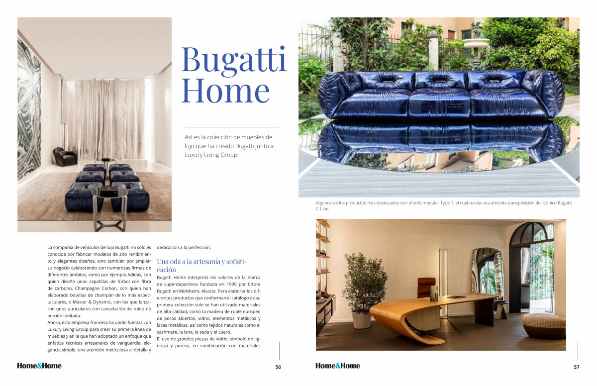 Algunos de los productos más destacados son el sofá modular Type 1 , el cual revela una atrevida transposición del icónico Bugatti C-Line .