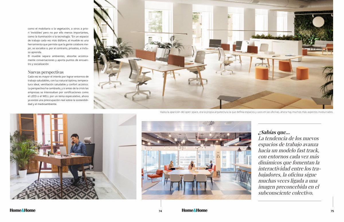 ¿ Sabías que … La tendencia de los nuevos espacios de trabajo avanza hacia un modelo fast track , con entornos cada vez más dinámicos que fomentan la interactividad entre los trabajadores , la oficina sigue muchas veces ligada a una imagen preconcebida en el subconsciente colectivo .