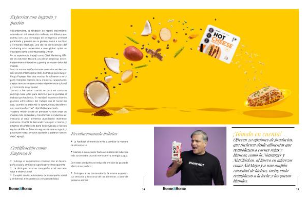 Recientemente , la foodtech de rápido crecimiento valorada en mil quinientos millones de dólares que cuenta con una tecnología de inteligencia artificial patentada y pionera en su género , sumó a sus filas a Fernando Machado , uno de los profesionales del marketing más respetables a nivel global , quien se incorporó como Chief Marketing Officer . En su experiencia , trabajó como Chief Marketing Officer en Activision Blizzard , una de las empresas de entretenimiento interactivo y gaming de mayor éxito del mundo . Tuvo la misma misión durante siete años en Restaurant Brands International ( RBI ). Su trabajo para Burger King y Popeyes hizo que muchos lo voltearan a ver y ganó múltiples premios de la industria , catapultando a estas marcas a nuevos niveles de relevancia cultural y crecimiento empresarial . “ Conocí a Fernando cuando se puso en contacto conmigo hace años para decirme que le gustaba el trabajo que hacíamos . En realidad , ¡ nosotros éramos grandes admiradores del trabajo que él hacía ! Así que , cuando se presentó la oportunidad , decidimos unir nuestras fuerzas ”, dijo Matías Muchnick . “ Nuestra misión desde un principio ha sido crear un mundo más sostenible y transformar la industria alimentaria al crear alimentos plant-based realmente deliciosos . El ADN de Fernando habla por sí mismo , y estamos encantados de darle la bienvenida a nuestro equipo de líderes . Estamos seguros de que su ingenio y pasión por nuestra misión ayudarán a acelerar nuestro viaje ”, agregó .