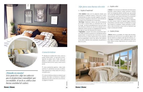 • Tapizados : La opción más común actualmente . Aportan calidez a la estancia y gracias a su variedad de colores , puedes añadir un toque de color al dormitorio . Su versatilidad de formas y estilos , podrán dotar a este cabecero de unas propiedades u otras : más clásico , más moderno o más sobrio . Además , al ser acolchados , son perfectos si lees en la cama .